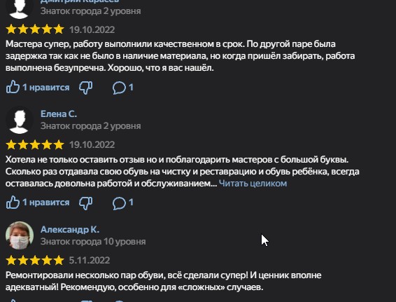 Наши цены в основном соответствуют указанным в прайс-листе, и в 90% случаев они не изменяются. Исключения возможны для особо сложных задач или в ситуациях, когда работы требуется выполнить в сжатые сроки. Мы предоставляем стоимость на услуги, которые заказывают чаще всего. Точный перечень необходимых процедур и оценку состояния обуви вам предоставит наш Старший мастер во время консультации.